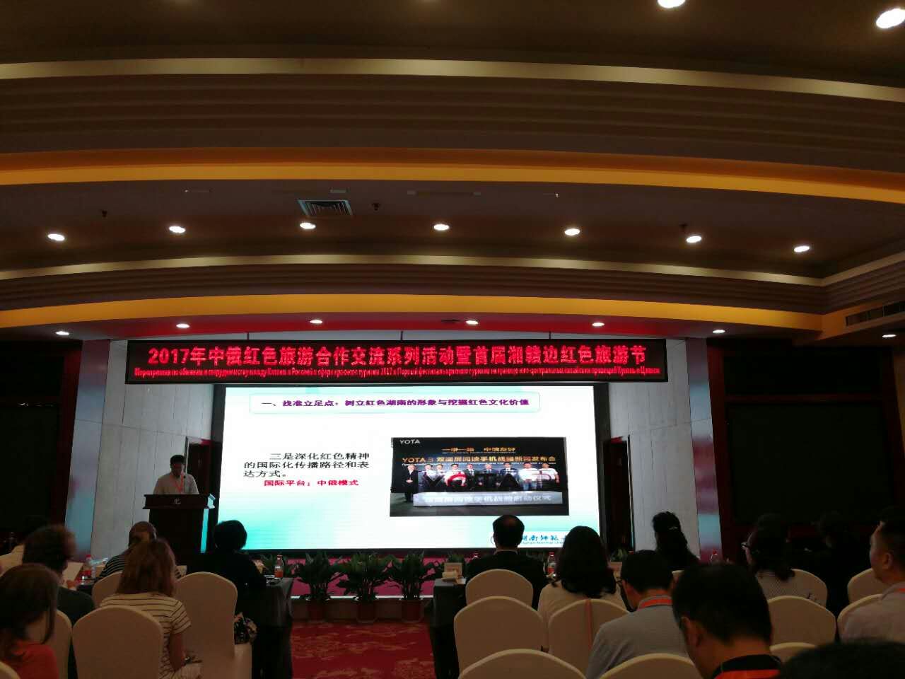 9月20日,由国家旅游局红办、中共湖南省委宣传部、湖南省旅游发展委员会、江西省旅游发展委员会、湖南省外事侨务办公室、长沙市人民政府联合主办的“2017年中俄红色旅游合作交流系列活动暨中俄红色旅游论坛”在浏阳市举行,集团院长王兆峰教授受邀出席会议并作主题演讲。国家旅游局红办常务副主任薛亚平、“世界无国界”旅游协会执行经理皮季哈特卡.斯韦特兰娜先后致辞。会议由湖南省旅游发展委员会副主任郭固权主持。