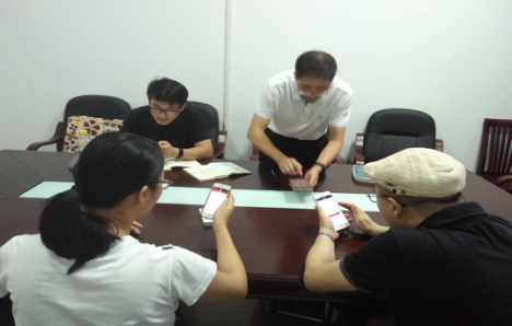 最后,郑群明示范了如何注册“红星云”公众号,以方便今后在线开展支部工作。