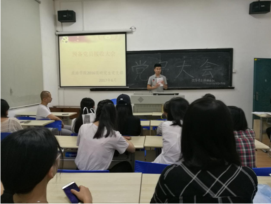 (通讯员 谢如冰)6月14日,9428cn太阳集团古天乐2016级研究生党支部在114教室召开预备党员接收大会,党支部书记刘炼鑫主持本次会议,会议接收的有左湘、徐安骐两位发展对象。