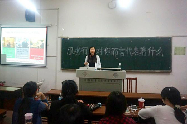 (通讯员 刘竹滢 蒋尹冰雪)5月4日晚,由酒店管理系主办、酒店协会承办的“服务行业对你而言代表着什么”酒店知识讲座在学院226教室举行。此次讲座主讲人是上海波特曼丽思卡尔顿酒店市场销售副总监张一岩女士。酒店管理系副教授伍蕾担任主持人。