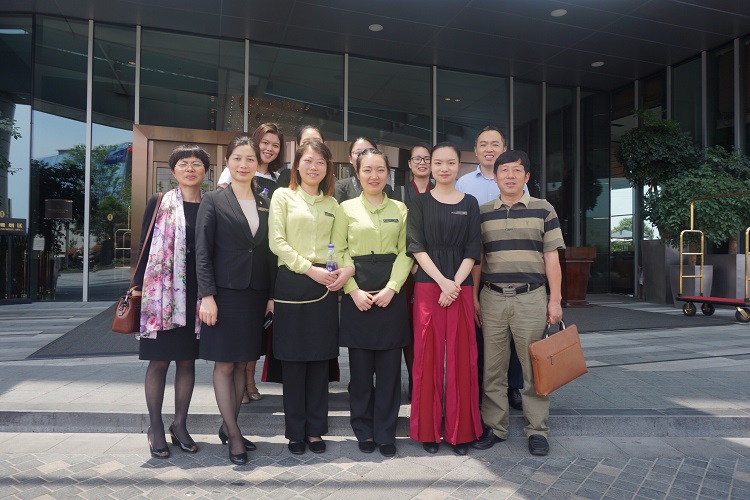 (通讯员 郭书畅)5月11日上午,学院党委书记李正益,酒店管理系主任唐健雄、副主任曹军辉和2014级辅导员郭书畅一行前往长沙万达文华酒店和北辰洲际酒店检查学生实习情况。万达文华酒店人力资源部总监肖科伟,北辰洲际酒店人力资源部经理罗冰、人事部经理王宁曦予以热情接待。