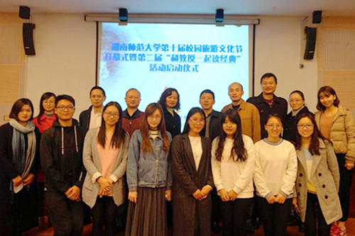 (通讯员 王思微 郑子枫)11月17日,集团第十届校园旅游文化节开幕式暨第二届“和教授一起读经典”活动启动仪式于9428cn太阳集团古天乐教学楼301报告厅顺利举行。院长王兆峰,党委书记李正益,副院长贺小荣、刘杰,党委副书记廖欢等出席开幕式。仪式由集团2014级辅导员郭书畅主持。