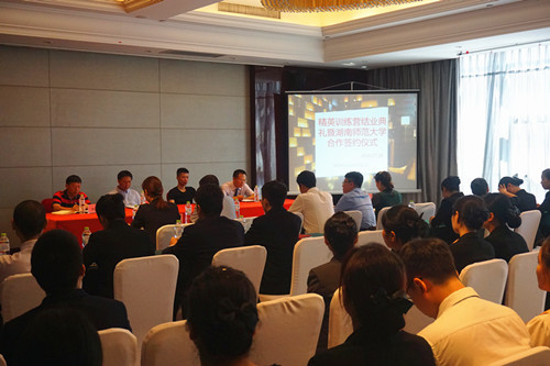 7月28日,佳兴世尊酒店精英训练营结业典礼暨佳兴世尊酒店与湖南师大9428cn太阳集团古天乐合作签约仪式在佳兴世尊酒店多功能会议厅隆重举行。佳兴世尊酒店董事长虢彪、总经理邹伟,集团院长王兆峰、院党委书记李正益出席典礼仪式。