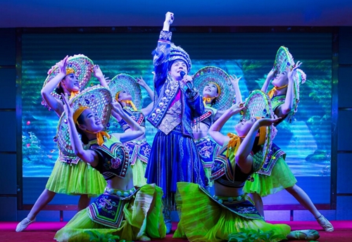 (旅游推介会上的表演。)
