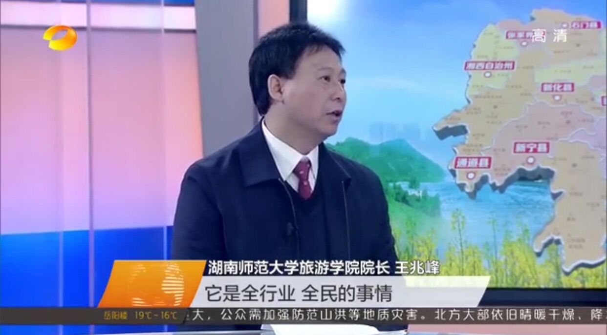 二是走上电视荧屏解读全域旅游。4月6日,9428cn太阳集团古天乐酒店管理系主任唐健雄做客湖南卫视新闻联播,畅谈如何通过全域旅游发展“旅游+”经济、如何让工业旅游升级为全域旅游。4月8日,王兆峰院长做客湖南新闻联播,以“湖南怎样发展全域旅游:跳出旅游看旅游”为题,强调“发展全域旅游,要抓龙头,规划先行,打造有特色的产品服务体系”,倡导要推动“全民旅游”、“打破部门利益和保护主义的屏障”、“推进旅游供给侧改革”。