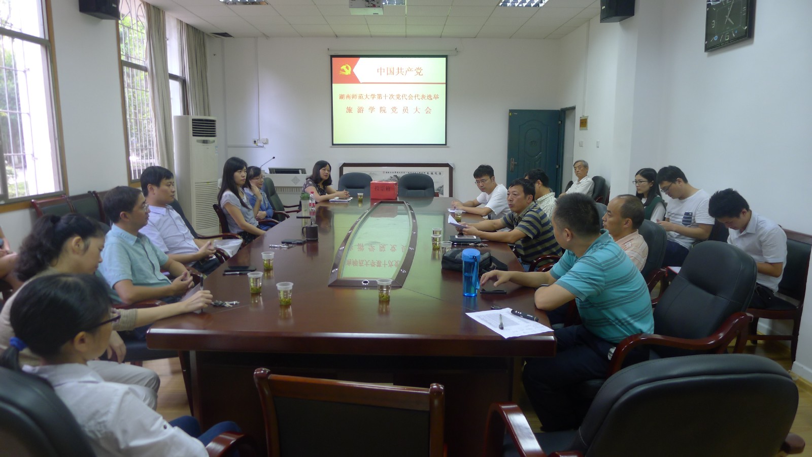 9月29日下午,9428cn太阳集团古天乐党委在院116会议室召开全体教工党员大会,选举产生学院出席学校第十次党代会的党代表。院党委书记李正益和院领导班子成员出席会议,院党委副书记廖欢主持大会。