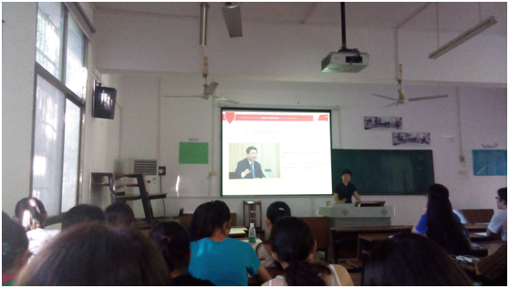 (通讯员 罗蓉)2015年6月24日下午,黄丽萍副书记在227教室为联系的2012—2013级本科生党支部上“三严三实”专题党课。