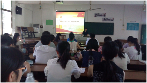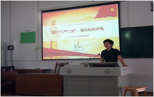 在党课过程中,黄书记重点提出,践行“三严三实”,要强化“严”“实”院风学风。她指出:“在学生党员中开展“三严三实”学习教育,是进一步加强学生党员队伍建设,提高思想政治素质,落实校党委文件精神、加强基层党建工作,营造良好校风学风、提高人才培养质量的需要”。