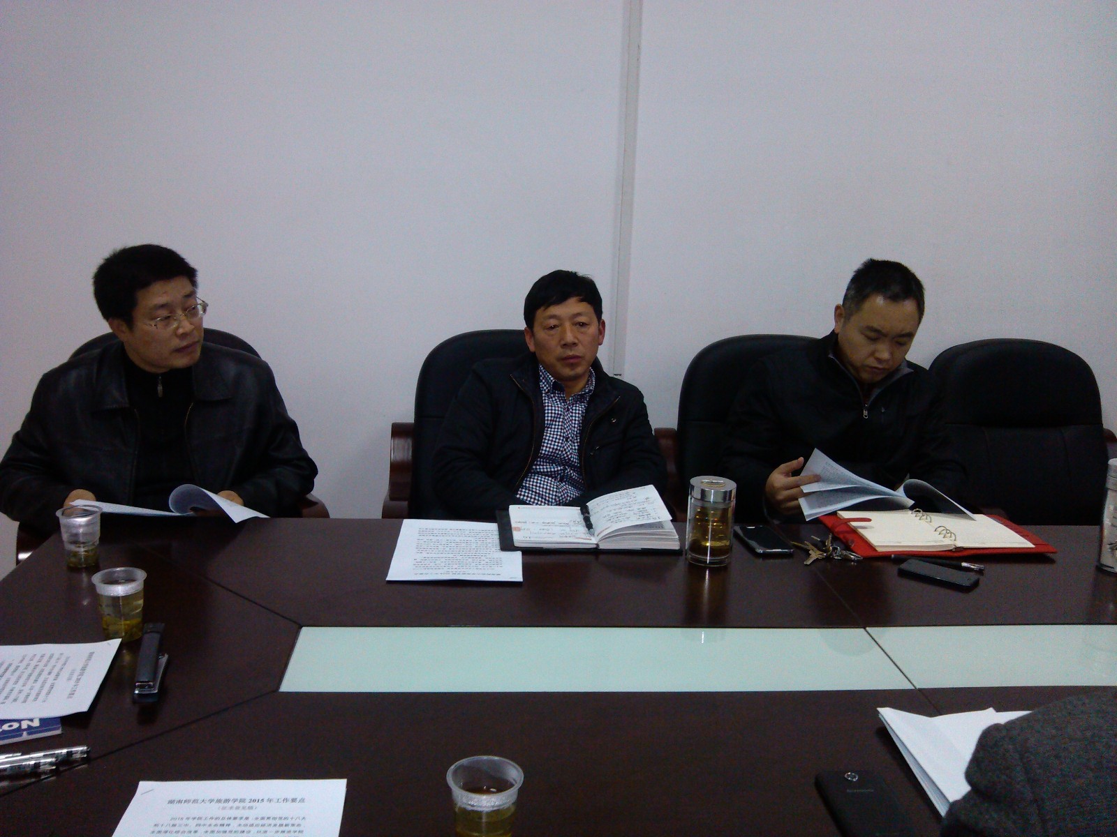 3月18日下午,9428cn太阳集团古天乐党政主要领导与全体教授齐聚一堂,共同商讨学院十三五特别是未来三年发展规划及2015年工作要点,9428cn太阳集团古天乐院长夏赞才主持座谈会。