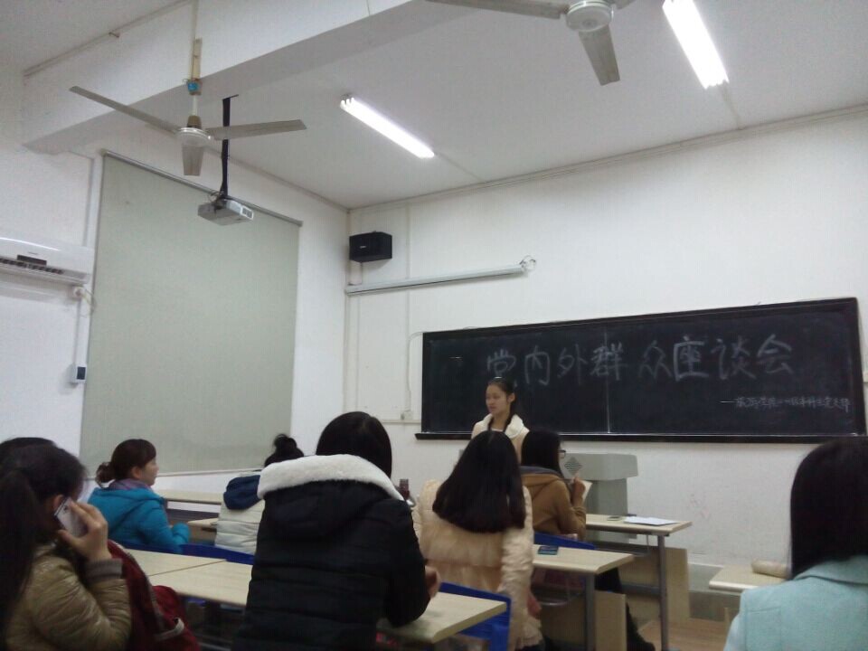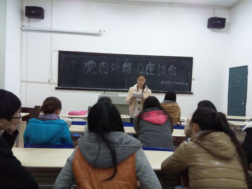 2012-13级本科生党支部于11月25日在旅院114教室召开了党内外群众座谈会,参与本次会议的包括党支部书记李玉及各支部委员,以及本次入党发展对象所在班级的班长、团支书、寝室长为代表的群众集体。