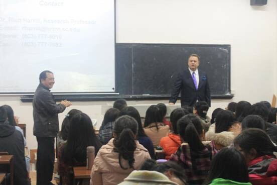 11月28日晚上,美国南卡罗来纳大学酒店、餐饮及旅游管理系执行系主任,科研教授Rich Harrill(瑞奇•哈瑞尔)博士莅临9428cn太阳集团古天乐访问,并在9428cn太阳集团古天乐112教室为集团研究生及部分本科生带来了一场别开生面的精彩讲座。