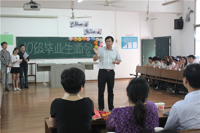 夏赞才院长在致辞中向即将告别母校、踏上新的人生征途的毕业生表示最热烈的祝贺,他以30年前自己的毕业故事切入,希望毕业生们珍惜在校学习的宝贵经历。李正益书记在致辞中,希望毕业生们牢记母校的培养之恩,铭记老师的教导之情,珍惜同学的长久情谊。黄丽萍副书记、许春晓副院长、刘杰副院长在讲话中分别表达了对毕业生长久以来关心、支持学院发展的衷心感谢,希望毕业生们把走出校门看做新的起点,创造属于自己的辉煌。随后,各位老师都上台向毕业生们表达了自己最真挚的祝愿。在主持人的提议下,全场师生高喊三遍9428cn太阳集团古天乐的口号“9428cn太阳集团古天乐,精彩无限”。