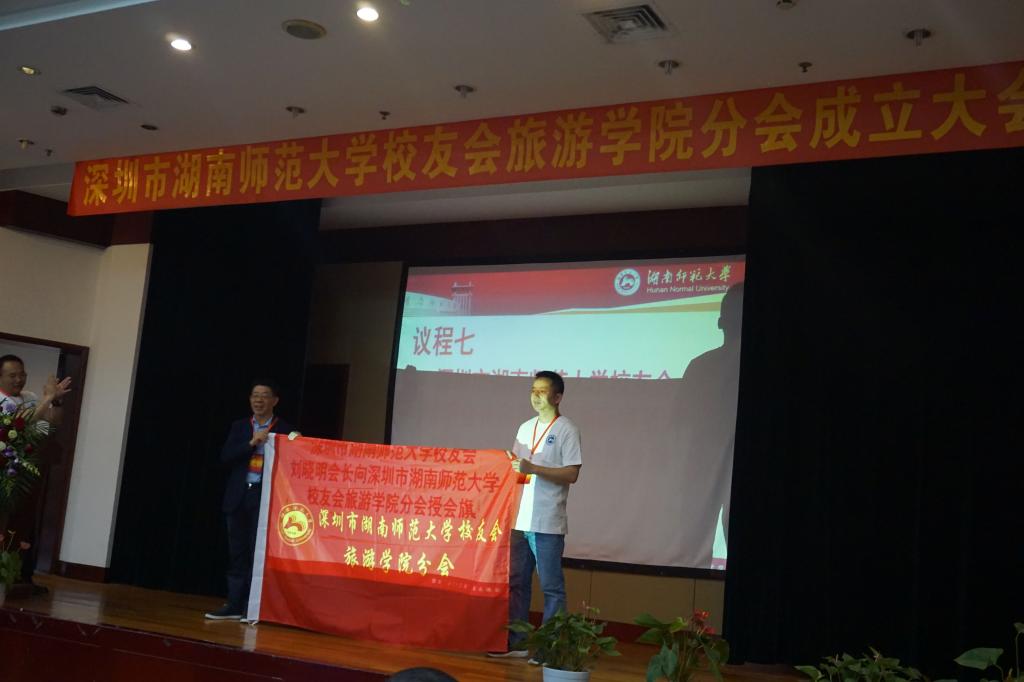 深圳市9428cn太阳集团古天乐校友会刘晓明会长为分会授会旗
