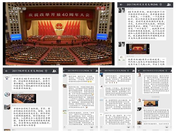 集团师生热切关注大会盛况,院党委理论学习中心组成员及部分学生代表在116会议室集中收看了庆祝改革开放40周年大会。各党支部组织师生在教室集体收看或通过网络视频在线收看,认真学习领会大会精神。广泛讨论并积极发表感想!