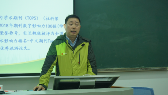 苏昌贵简要介绍了《经济地理》期刊,分享了期刊论文的特点及写作要求的经验。他结合编审工作中的实际体会,介绍了旅游地理与旅游管理学科论文的撰写中要重点注意的事项和建议,并就期刊论文撰写中包含的八部分内容进行了着重的分析。他特别指出期刊论文的格式规范、内容严谨、图表数据是基本要求,选题要关注热点焦点重点问题,文章内容、研究方法、创新之处及关键问题必须清晰到位。他建议大家要关注不同期刊的选文偏好。他希望大家一定要端正态度,规范写作,写高质量论文。