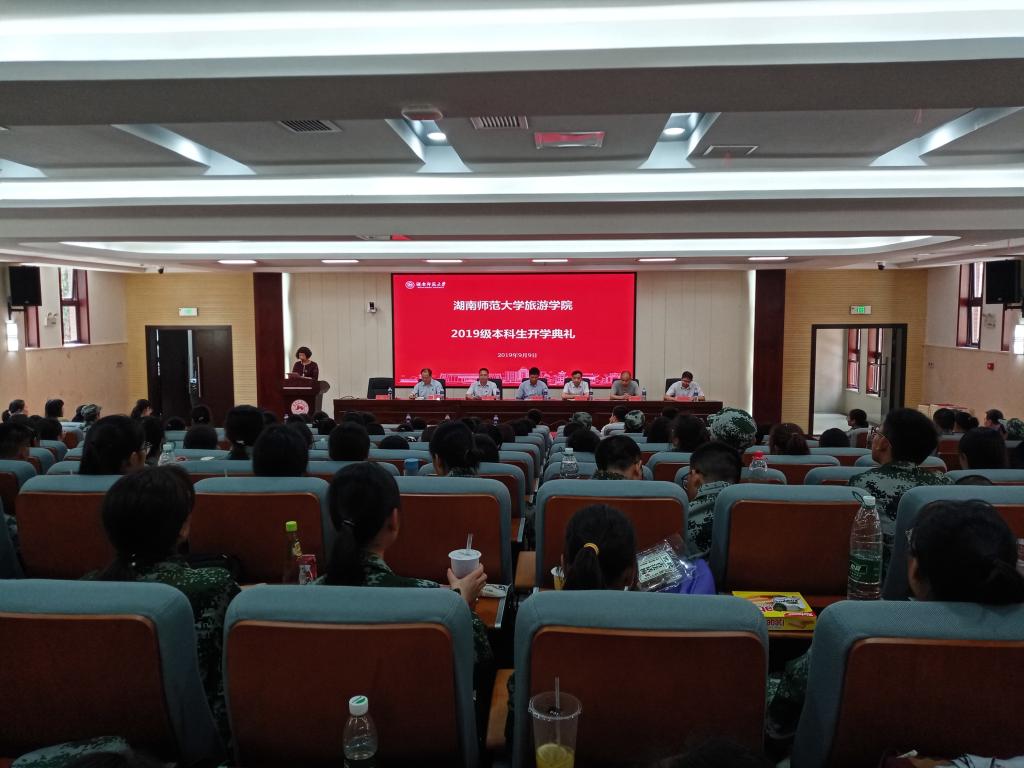 (通讯员 朱彤)9月9日下午,学院2019级新生开学典礼在中和讲堂举行。学院院长王兆峰,院党委书记鲁良,副院长许春晓、贺小荣,教师代表郑群明教授及优秀校友刘丁杰先生出席典礼活动。典礼由院党委副书记廖欢主持。