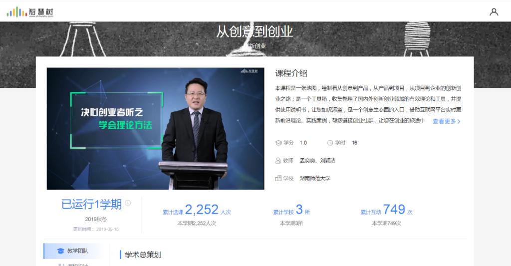 该课程由会展经济与管理系主任孟奕爽副教授主持、酒店管理系副主任刘颖洁副教授主讲,党委书记鲁良、副院长许春晓教授担任课程思政指导和学术顾问,蔡卫民、朱张祥、龚曦等多位老师都参与了本课程。2018年以来陆续在中国大学MOOC和智慧树平台上线,现累计选课人数超过三万人,网络评分4.9分(满分5分),获得了校内外学习者的一致好评。与课程配套的专著《创业思考力——从创意到产品开发》已经在7月份正式出版。