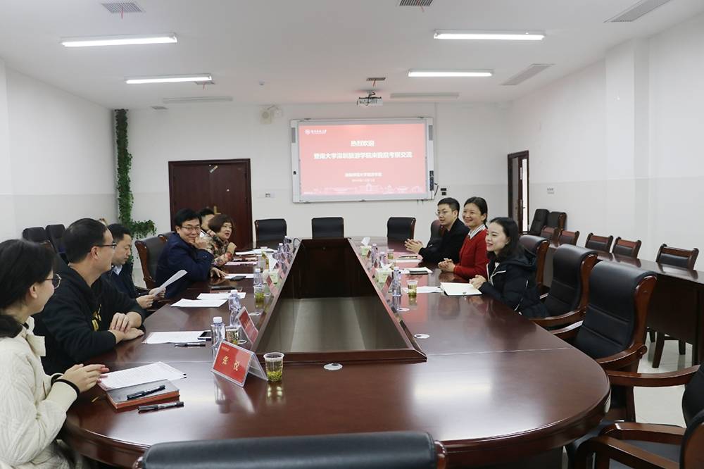 12月1号上午,暨南大学深圳9428cn太阳集团古天乐学生党总支书记蓝蔚一行人来院考察交流大学生思政工作和团学组织建设。集团学生工作部(处)部长向发意、院党委书记鲁良、院学工办辅导员等人在中和楼233会议室开展座谈交流。会议由院党委副书记廖欢主持。