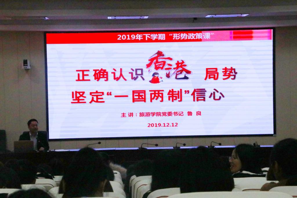 (通讯员 宁晓洲 史雅潼)12月12日下午,学院2019级新生形势与政策课在中和楼234教室举行。院党委书记鲁良做“正确认识香港局势,坚定一国两制信心”专题讲座。