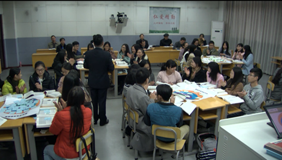 此次比赛,孟奕爽博士以《组织行为学》课程中的企业组织文化章节作为参赛内容,采用分组讨论的形式展开教学,并制作企业文化洋葱模型海报促进同学们及时消化所学内容,课堂氛围活跃,精彩纷呈。