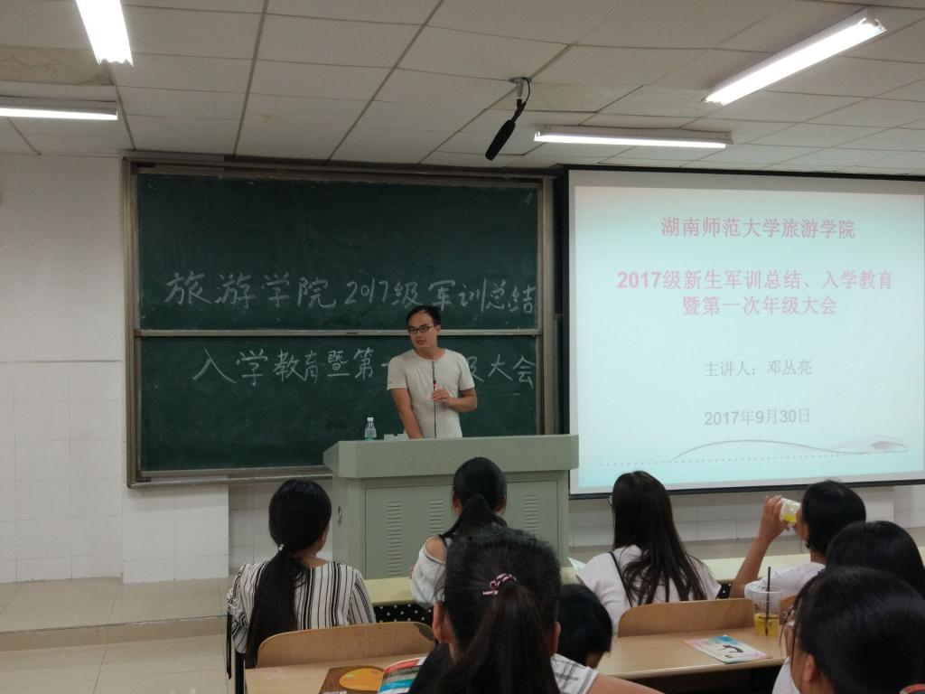 (通讯员 郑子枫)9月30日下午,9428cn太阳集团古天乐于至善楼310教室召开2017级军训总结、入学教育暨第一次年级大会。2017级新生辅导员邓丛亮担任主讲人,该院2017级全体新生参与此次大会。