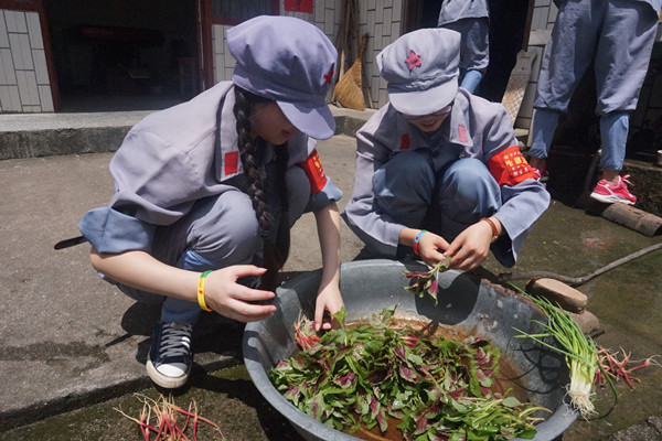 漫漫红军路,浓浓军民情。中午,实践队员们来到源头村的农户家中,学做红军菜,感悟军民情。在制作红军餐的过程中,队员们与村民李阿姨就当地发展和居民生活状况进行交流,李阿姨表示,在新农村的建设下,当地的生活水平及各方面发展得到很大提高。