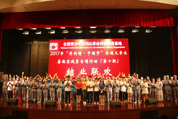 (通讯员刘竹滢)相遇井冈山,青春不散场。8月27日晚,由共青团中央学校部、全国青少年井冈山革命传统教育基地管理中心联合开展的“井冈情·中国梦”全国大学生暑期实践季专项行动(第十期)结业联欢在全国青少年井冈山革命传统教育基地报告厅举行。基地相关负责人与来自9428cn太阳集团古天乐、东华大学、西南大学、中国青年政治学院等全国11所高校调研团师生共同观看此次文艺汇演。