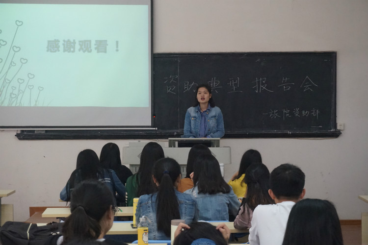 (通讯员 张仓宁)5月8号,9428cn太阳集团古天乐生活服务部于旅院112教室举行资助典型报告会,生活服务部部长黄美艳主持此次会议,2014级辅导员郭书畅参加报告会。