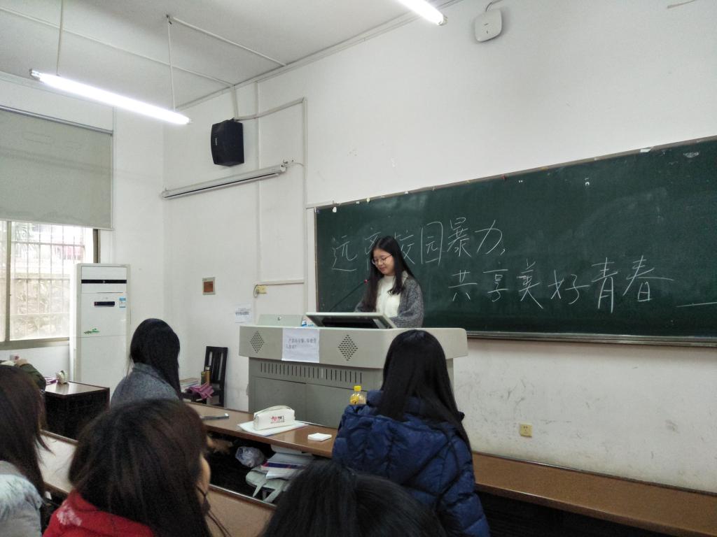 王艺首先通过详细讲述某大学学生崔某因与同学关系不和,持利器将其砍死这一案例的起因经过,引出校园暴力对个人和社会造成的危害。朋辈辅导员们积极讨论事件出现的原因,大家一致认为,现代社会生活节奏快,各方面压力大,人在有限的精力下,当觉得自身利益受到伤害时,本能地愤怒和攻击,但他不是以一个社会认可的方式发泄,而是寻找一种极端行为进行发泄,那么就可能对伤害他的人产生暴力倾向。最后,王艺结合朋辈心理辅导员们的工作职能提出了预防微小的矛盾升级为校园暴力的方法,希望加强同学们心理这方面的监督,经常开展一些活动,让人的能量能够通过正常途径转化。