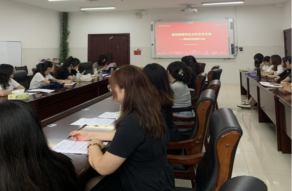5月27日,旅游管理专业本科生党支部于中和楼233会议室召开党员大会,本次大会主要是讨论表决接收预备党员和预备党员转正事宜,党员大会由支部书记黄静云主持,支部“第一书记”赵雅璇到会指导。