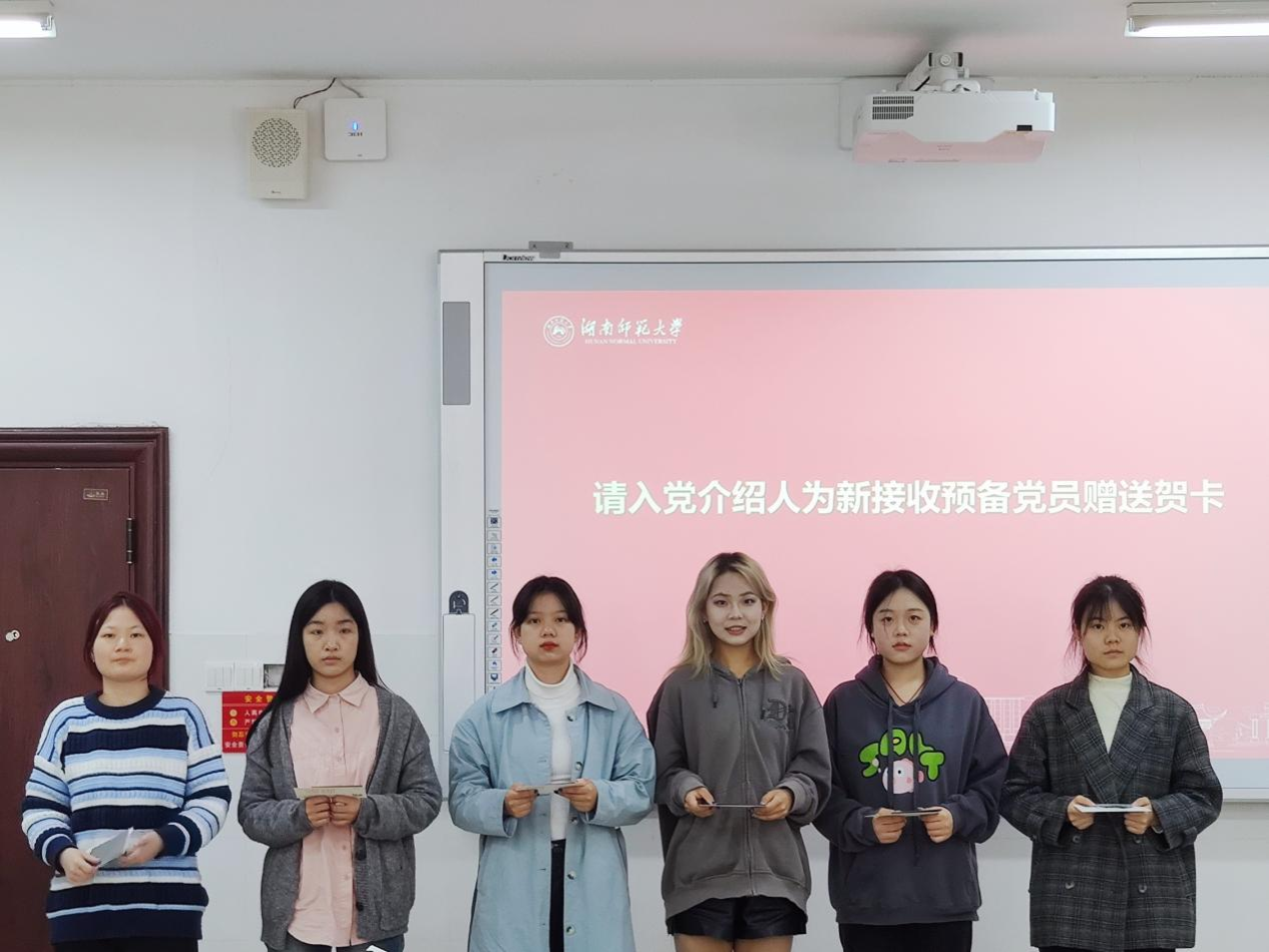 最后,支委给新预备党员赠送贺卡,邱粤湘带领全体党员宣誓。